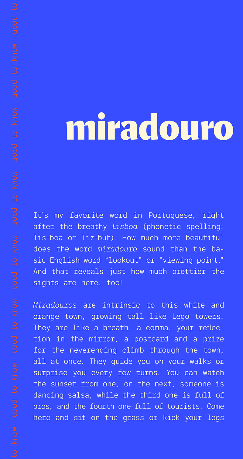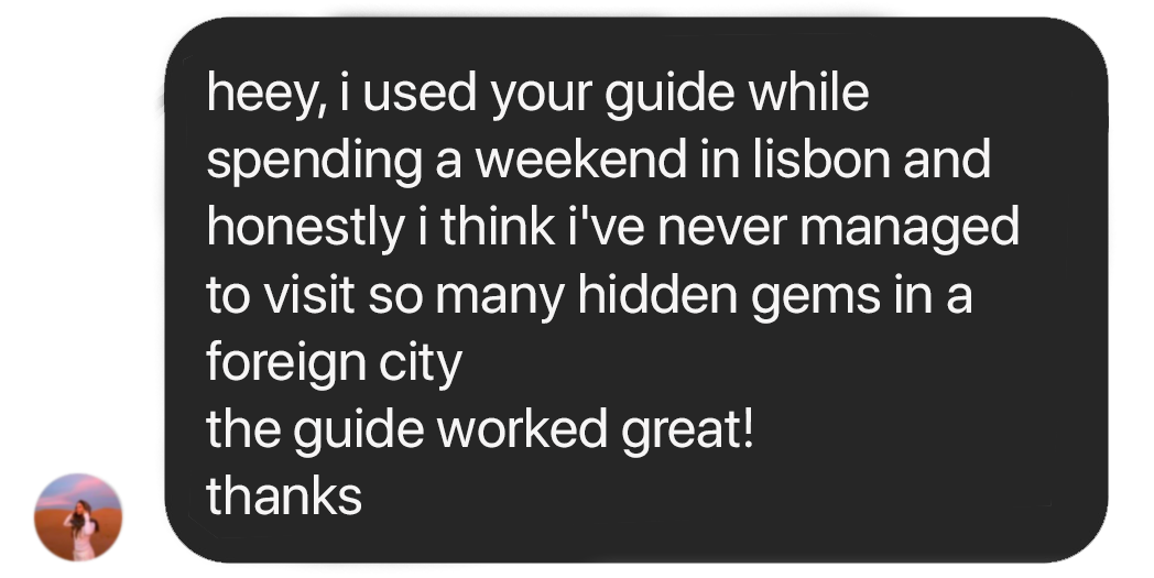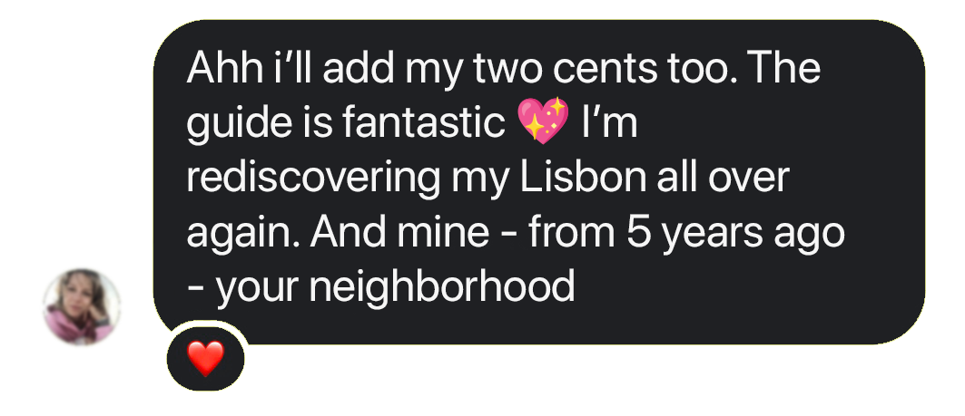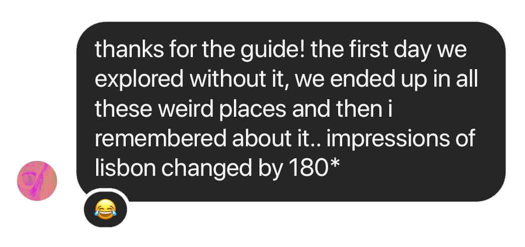 * 45 carefully selected placed we discovered while living in Lisbon. Local cafes, small galleries, excellent restaurants, the most beautiful parks, scenic viewpoints, recommended walks, and other attractions.